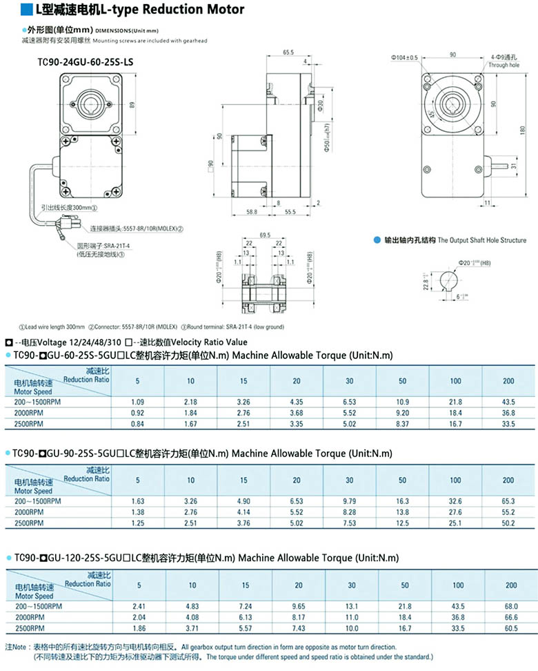 L型直流無刷減速電機90W-120W