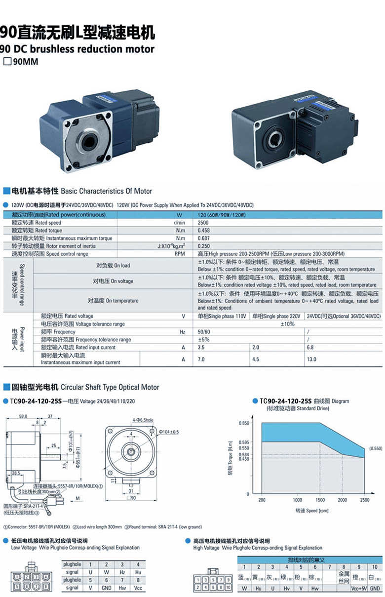 產品名稱:L型直流無刷減速電機90W-120W